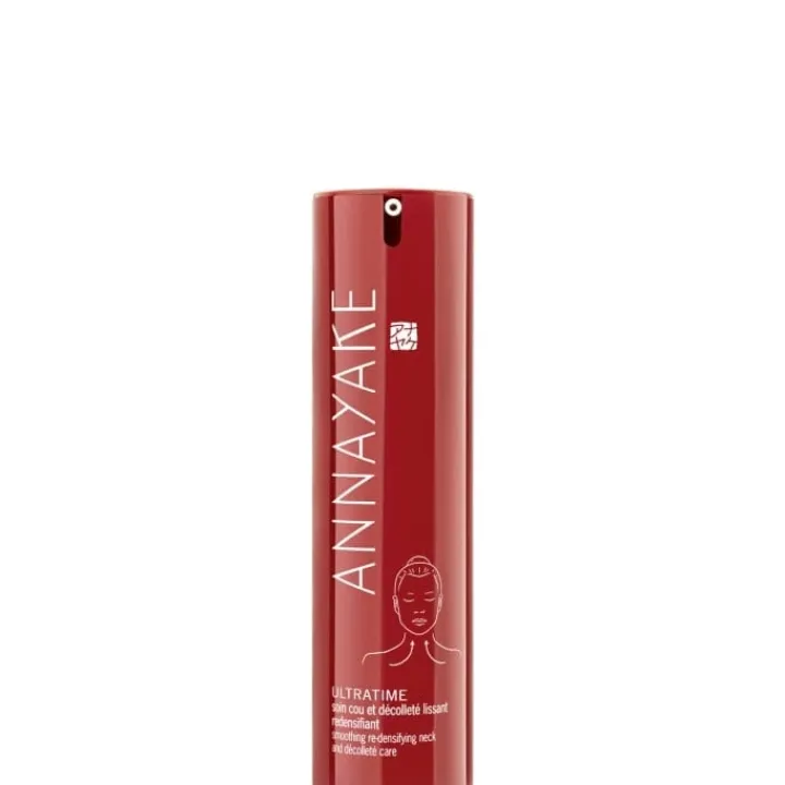 Particulièrement fragile et exposée aux agressions extérieures, la peau du cou et du décolleté a tendance à vieillir prématurément. Le Soin Cou et Décolleté Lissant Redensifiant Ultratime Annayaké est là pour prévenir et corriger l’ensemble des premiers signes de l’âge. Jour après jour, ce soin rajeunit visiblement la zone sensible du cou et du décolleté grâce à une synergie d’actifs exclusive. Le katrizen mime les mécanismes d’autoréparation cutanée afin de lisser et de retendre efficacement la peau. Il est associé aux extraits de kudzu et de soja, deux ingrédients aux vertus redensifiantes et restructurantes. Enfin, une algue rouge connue sous le nom de dulse vient compléter la formule, offrant une action dépigmentante efficace contre les taches brunes et autres désordres pigmentaires.