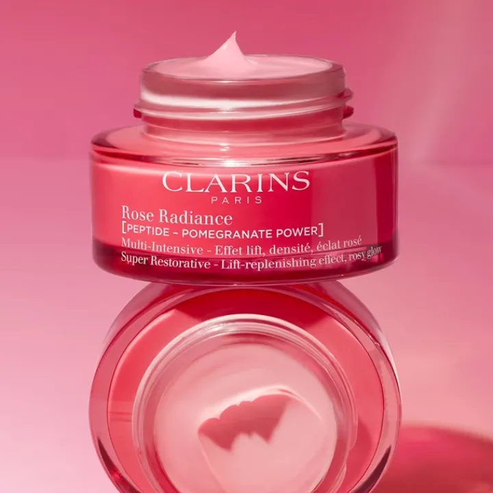 La teinte rosée de la crème Multi-Intensive Rose Radiance agit comme un booster d’énergie pour la peau et le moral, et offre un effet embellisseur immédiat qui ravive l’éclat de toutes les femmes, quel que soit leur type de peau et leur carnation.