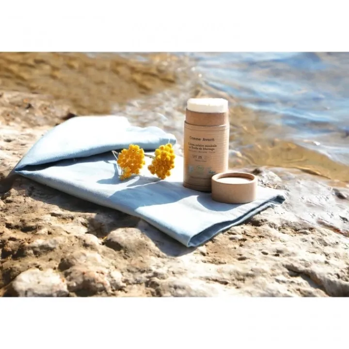 La crème solaire à l’Huile de Moringa COMME AVANT est un soin solaire visage & corps naturel doté d’une protection SPF25 et certifié Bio Cosmos Organic fabriqué près de Marseille, en France dans un atelier artisanal.