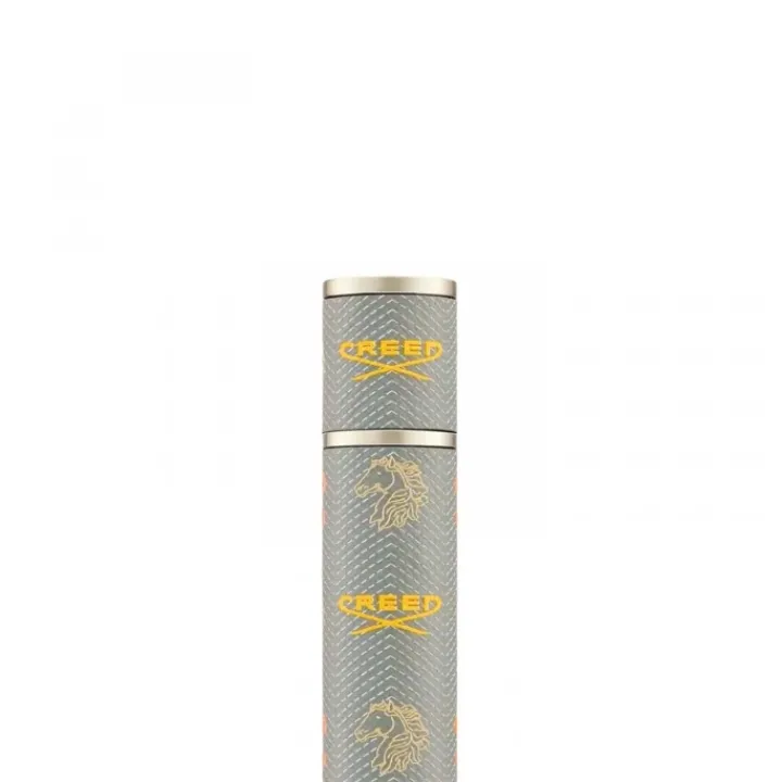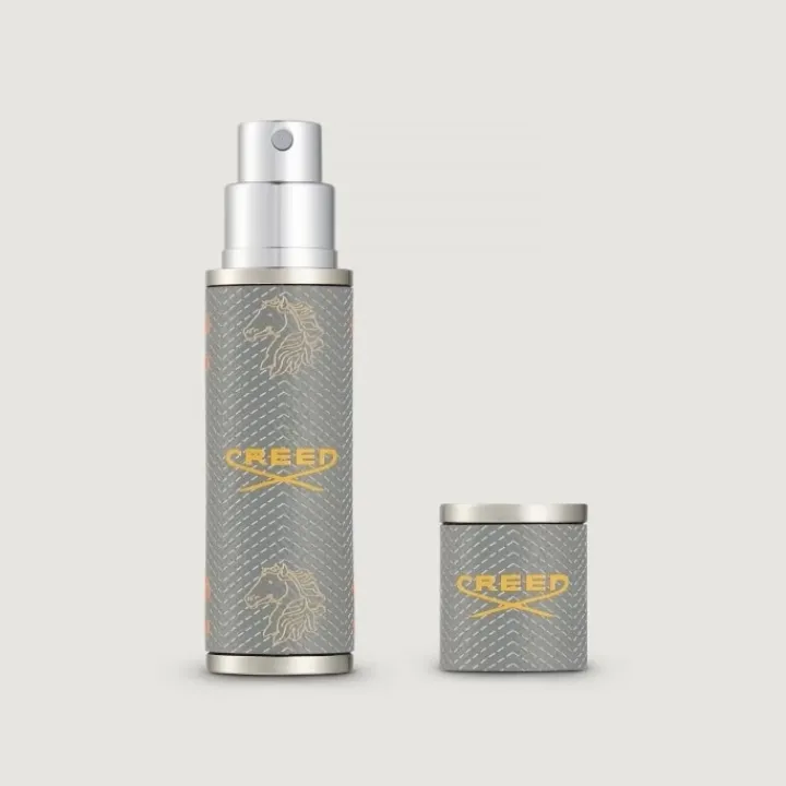 Façonné dans un cuir travaillé à la main, ce vaporisateur de voyage témoigne d’un savoir-faire d’exception et se décline ici dans une teinte gris classique embellie du motif Creed signature.