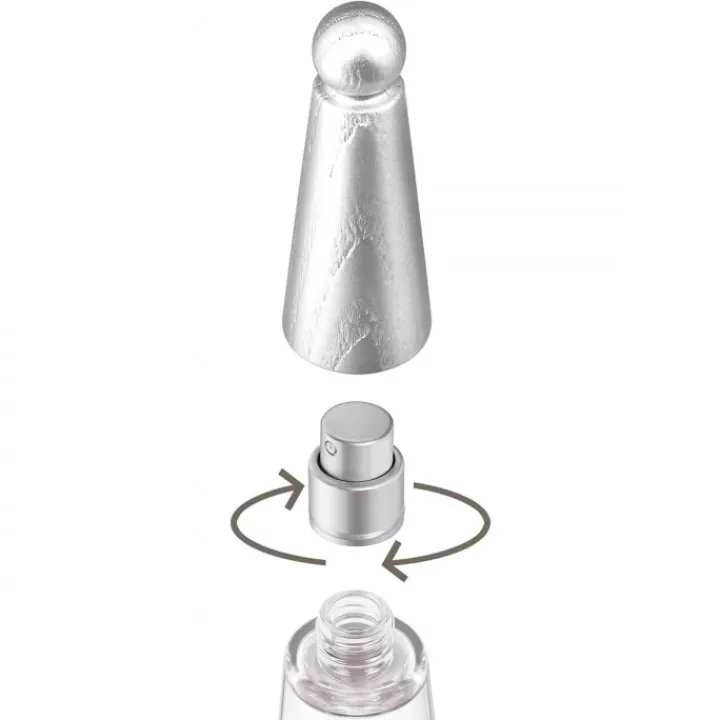 Il suffit de dévisser la pompe du vaporisateur et de visser la recharge sur le flacon. La recharge s’arrête automatiquement lorsque le flacon est plein.