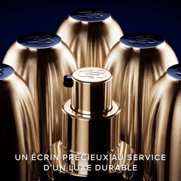 Le fluide prodigieux du Concentré de Longévité est désormais capturé dans une fiole raffinée. Quintessence du luxe, ce précieux flacon a été pensé comme un bijou épuré et plus généreux qui s’inscrit dans la démarche d’éco-conception de la maison Guerlain.