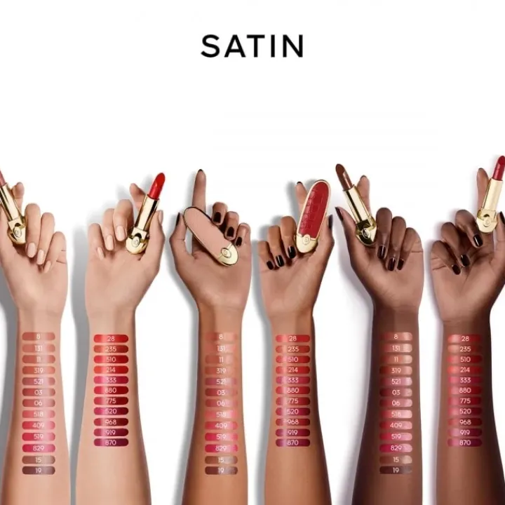 Les formules satin et mate velours de ce Rouge G nouvelle génération s’accompagnent d’une texture fondante ultra-légère pour une sensation lèvres nues et un confort 16h³.