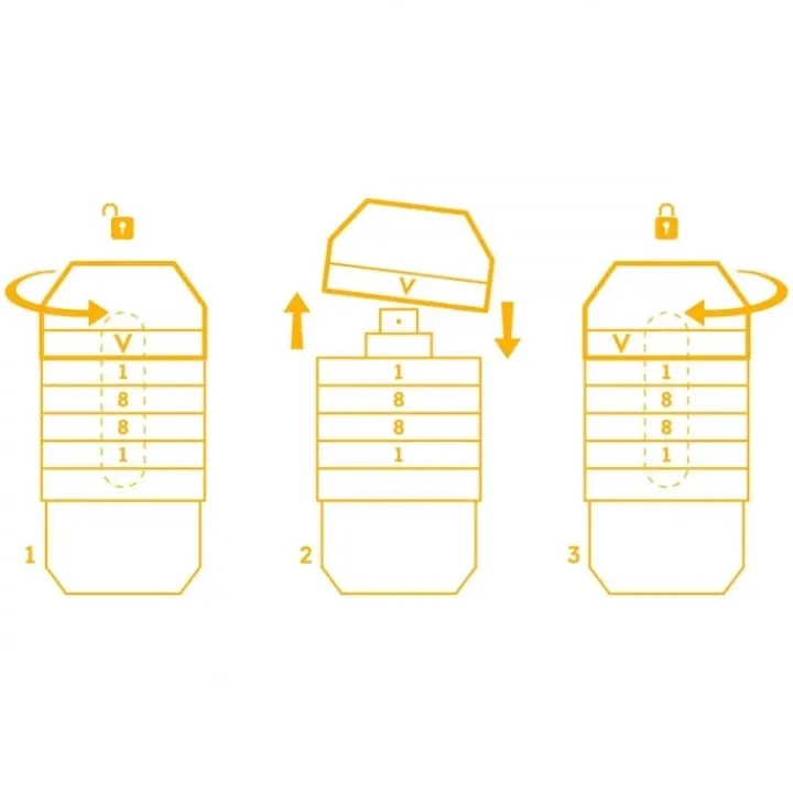 Pour accéder à la fragrance, il suffit de faire pivoter le capot afin de révéler le code secret vertical, V1881, en caractères orange.