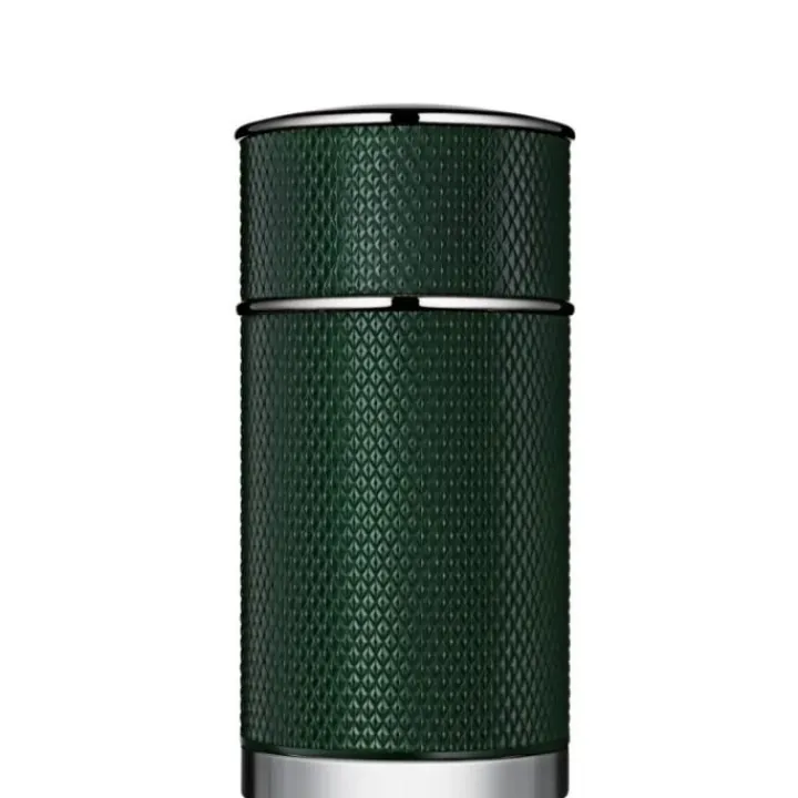 Icon Racing Eau de Parfum Dunhill se loge dans l’emblématique flacon aux motifs guillochés. Toutefois, ici, l’artiste Mark Eisen l’habille d’une couleur verte venant retranscrire la fraîcheur de la verdure de cette campagne.
