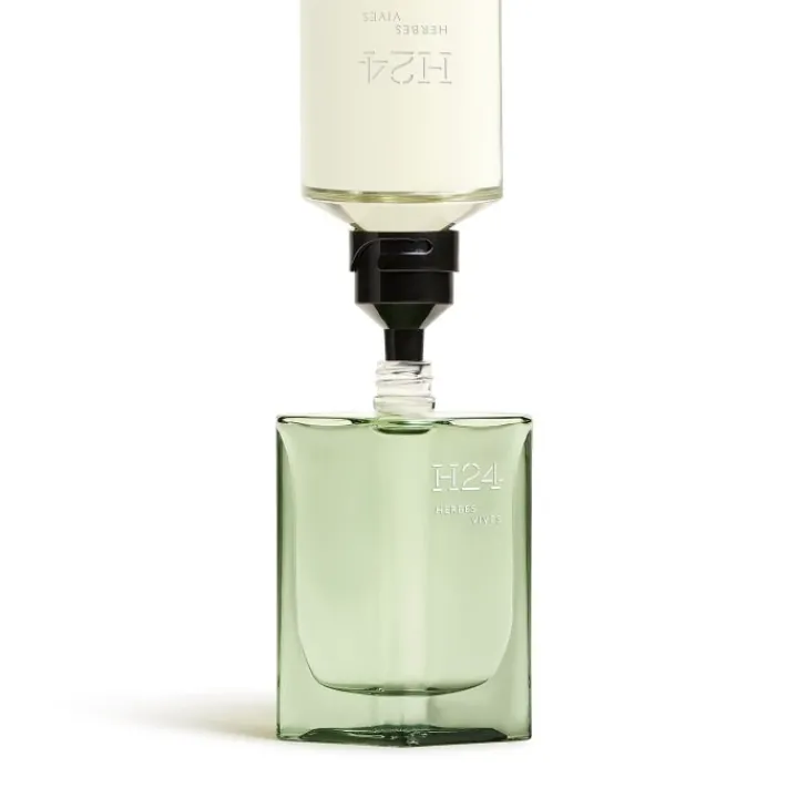 L’eau de parfum H24 Herbes Vives associe la puissance d’un bouquet d’herbes fraîches, la texture d’une poire granitée et la vivacité d’une molécule high-tech, le Physcool®.