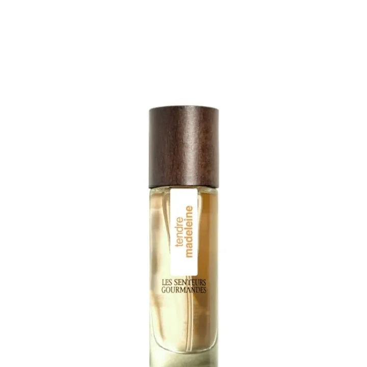 TENDRE MADELEINE s’ouvre sur une symphonie gourmande avec des notes éclatantes de bergamote, amande et orange, évoquant la douceur d’une pâtisserie fraîchement préparée.