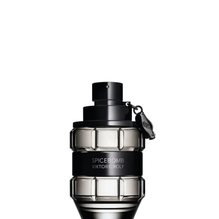 Retrouvez Spicebomb Viktor&Rolf dans un flacon facetté en forme de grenade grise argentée. Un bandeau central noir brillant vient élégamment ceinturer la bouteille, alors que le sceau de Viktor&Rolf, accroché au spray, fait office de détonateur sur cette arme de séduction massive.