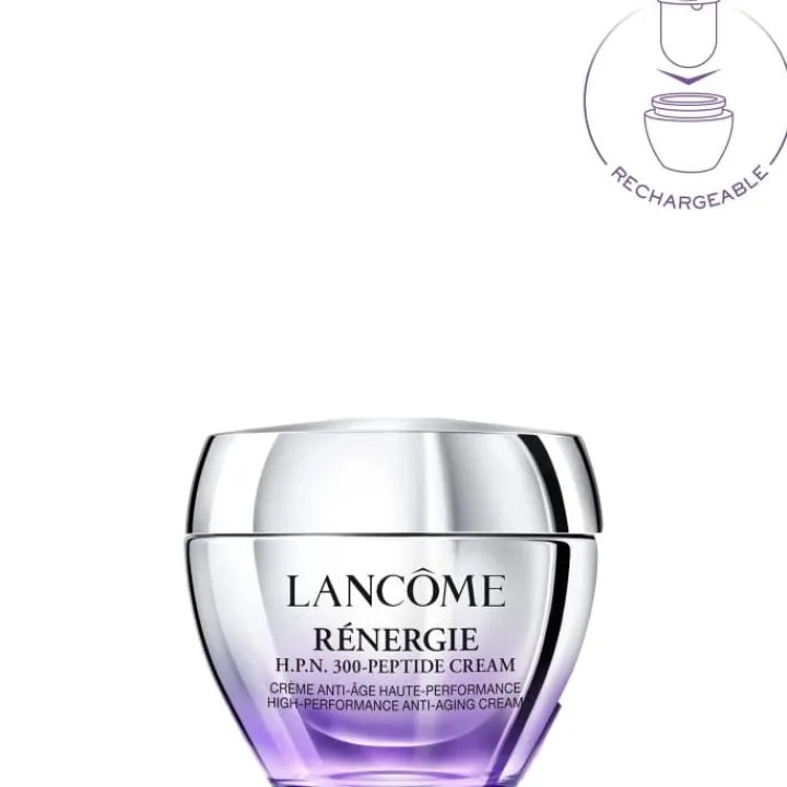 Pour la première fois (1), les laboratoires Lancôme concentrent plus de 300 types de peptides avec de l’acide hyaluronique et de la niacinamide dans une crème anti-âge haute performance rechargeable pour régénérer la peau aussi vite qu’une peau plus jeune.