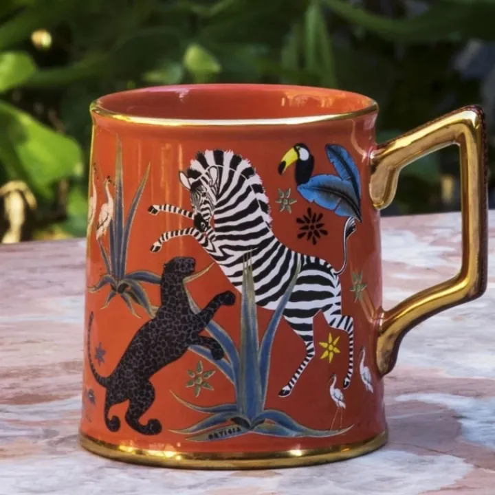 - Finition : céramique peinte à la main, rehaussée d’une sérigraphie dorée – chaque pièce est unique