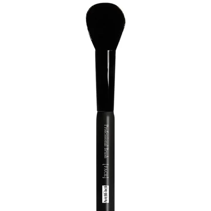 Sa forme arrondie est spécifique pour appliquer les fards à joues, pour un effet bonne mine et pour mettre en valeur les pommettes.