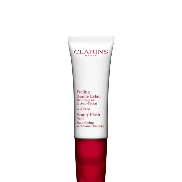 Ce Peeling Beauté Eclair resurfaçant élimine les cellules mortes et renouvelle progressivement la peau pour révéler l’éclat du teint. Directement inspiré des techniques Clarins en Institut, ce soin resurfaçant expert à appliquer au pinceau est magique pour faire peau neuve à la maison. Il exfolie la peau chimiquement pour accélérer la régénération cutanée et lui redonner éclat et souplesse. C’est le nouveau geste rapide, pratique et efficace. Ce type d’exfoliation permet de décoller les cellules mortes de la peau grâce à la présence d’acides kératolytiques dans la formule. L’exfoliation chimique atténue visiblement l’apparence des imperfections et booste son éclat en un éclair. La formule du Peeling Beauté Eclair agit à tous les niveaux de la peau pour cibler efficacement et visiblement le manque de d’éclat, les irrégularités cutanées et les rides apparentes.