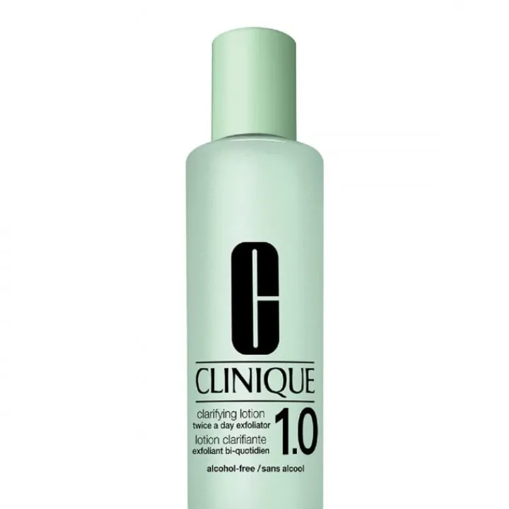 1 minute, 2 fois par jour. Pour une peau saine, lisse et éclatante. La célèbre lotion Clarifiante revient avec une nouvelle version pour les peaux sensibles. Une fois la peau bien nettoyée grâce au savon visage Facial Soap Mild Clinique, la deuxième étape de la routine préconisée par Clinique est l’exfoliation avec la lotion clarifiante 1.0. Sa formule mise au point par les dermatologues permet de révéler une peau plus fraîche et moins terne.