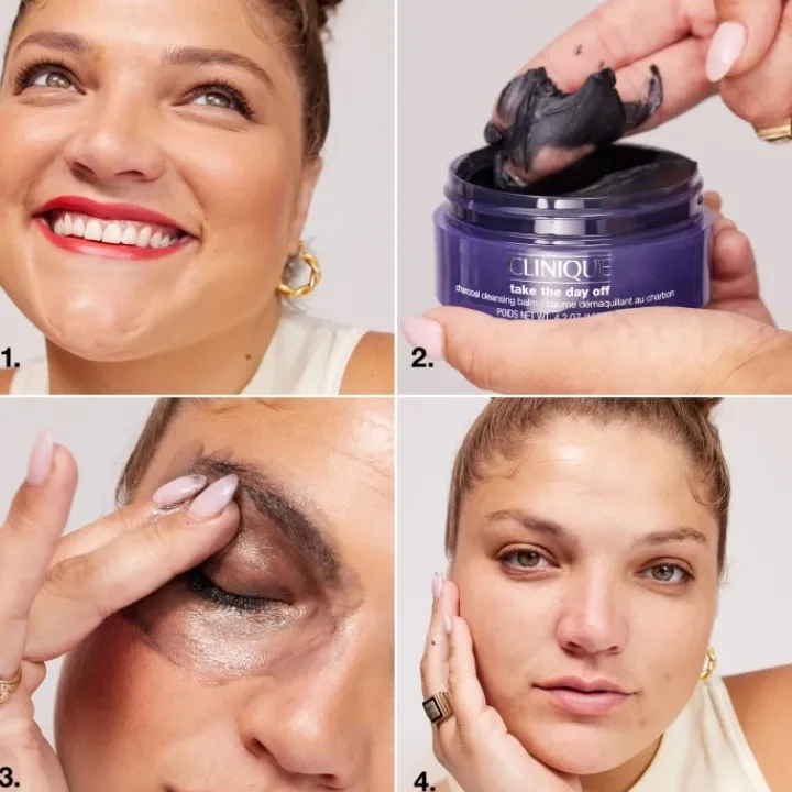 Notre nouveau Take The Day Off™ Baume Démaquillant au Charbon démaquille en profondeur et se rince sans laisser de résidu, pour ne laisser que votre teint frais et net.
