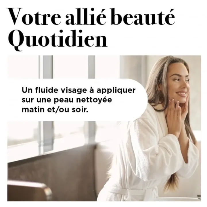 Ce fluide hydratant quotidien apaise, répare et protège le visage des agressions extérieures. Il est spécialement formulé pour hydraterla peau pendant huit heures et la protéger des rayons UV et autres agressions extérieures. Hydratée en continue, la peau est visiblement lissée, plus fraîche et rayonnante.