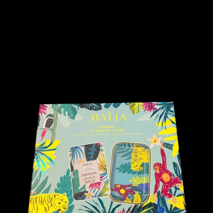 Découvrez l’inséparable duo maison et corps. Accompagné de son porte-savon en céramique décoré, le savon solide enrichi au beurre de karité bio libère une irrésistible fragrance de fleur de tiaré pour un voyage sous le soleil des îles.