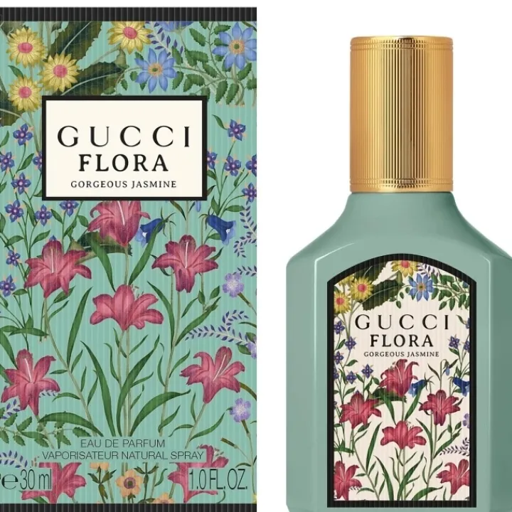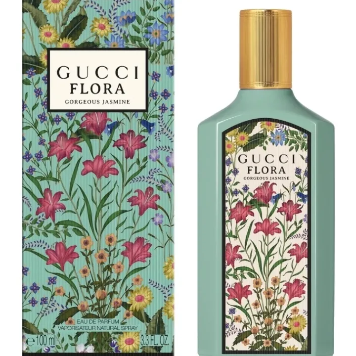 Gucci Flora Gorgeous Jasmine se révèle dans une composition radieuse, dominée par les notes de jasmin Grandiflorum.
