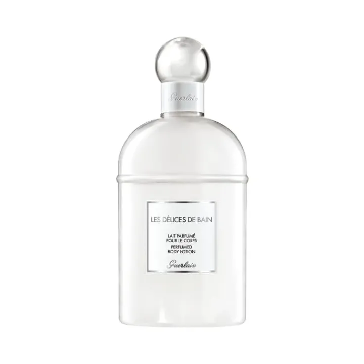 Le lait pour le corps de la ligne Les Délices de Bain de Guerlain, au délicieux parfum hespéridé musqué, dévoile une texture fluide et veloutée qui infuse l’épiderme d’une confortable hydratation.