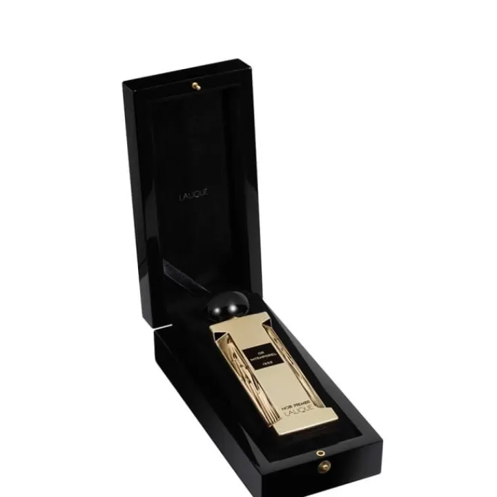 L’Eau de Parfum Or Intemporel voit le jour en 2015 et intègre la prestigieuse collection Noir Premier. Ici, la maison Lalique est partout et le luxe qu’elle dégage s’inscrit dans l’Eau de Parfum Or Intemporel. Par ailleurs, la fragrance Or Intemporel est un véritable hommage à René Lalique, principalement au poinçon « RL » qu’il a déposé en 1988. Or Intemporel est une essence luxueuse qui met à l’honneur le créateur et la maison Lalique. Le flacon est semblable à tous ceux de la collection Noir Premier, somptueux et élancé. De style Art déco aux formes sculpturales, le flacon se couvre ici entièrement d’or et mêle le précieux métal à l’élégance du noir.