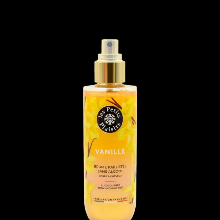 Inspirée de notre Eau de Toilette, la Brume Pailletée Sans Alcool Vanille laisse votre peau, vos cheveux et vos vêtements délicatement parfumés et scintillants.