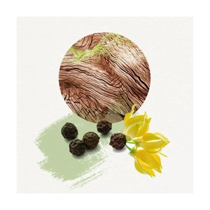 Notes de tête : En ouverture le poivre noir, les grains de genièvre expriment, par leurs accents épicés et racés, toute la force masculine, adoucie par la note florale de l’ylang-ylang.