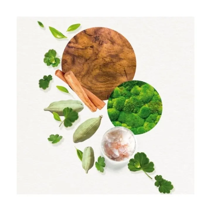 Notes de fond : Puis s’opère une transition vers des harmonies boisées et ambrées. Le bois de cachemire, chaud et vanillé attise le cèdre qui apporte une noblesse boisée, accentuée par la mousse. Enfin, le santal, riche et précieux, délivre des harmonies, rondes, boisées, douces.