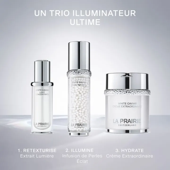 White Caviar L’Extrait Lumière est un sérum concentré enrichi de Lumidose™ brevetée, la molécule éclaircissante la plus puissante connue à ce jour et du Complexe Cellulaire Exclusif™ de La Prairie.