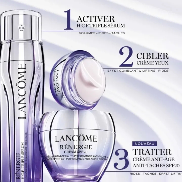 - – Etape 2 : Traitez avec la Crème Rénergie Anti-Âge Haute-Performance Anti-Taches SPF20 pour une efficacité anti-âge global.
