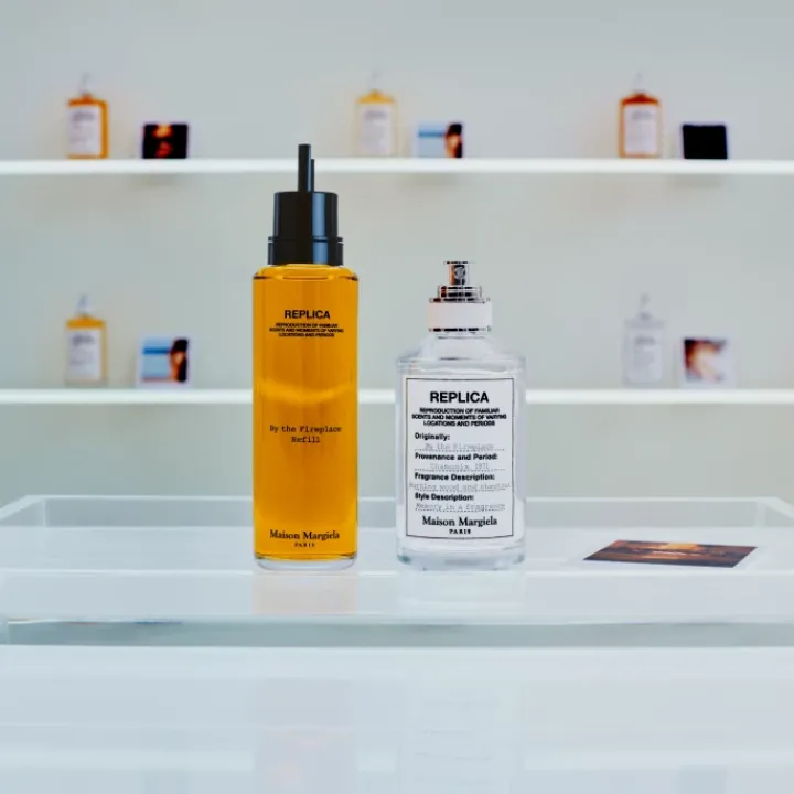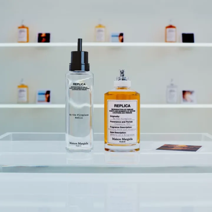 By the Fireplace, l’un des parfums best-seller de la Collection REPLICA est désormais Rechargeable pour continuer à utiliser votre parfum à l’infini !
