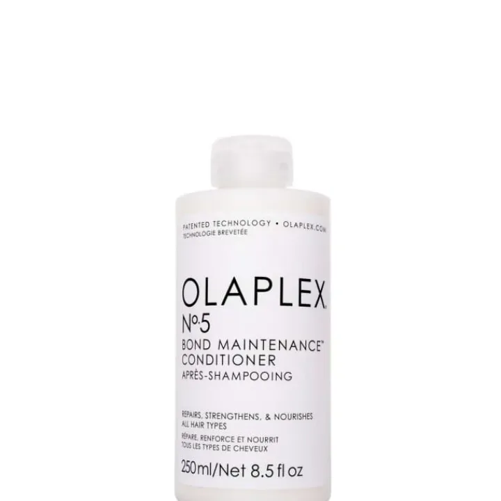 L’après-shampooing Bond Maintenance N°5 OLAPLEX aide à restaurer les liaisons capillaires sans alourdir la chevelure.